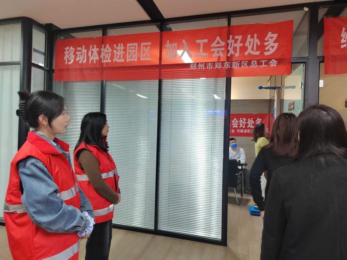 3月7日,郑东新区总工会联合河南省职工医院走进河南长通跨境电商产业园区,开展“移动体检进园区 加入工会好处多”女职工健康体检服务下基层活动,为女神主播们送去“三八节”工会女职工专属福利。