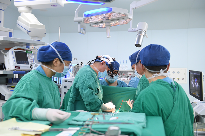 精心筹备后,手术开始了。范太兵教授、宋书波副主任医师等专家运用食道超声引导,将一枚全降解封堵器,准确释放在心脏发育缺损部位,成功治愈了患者室间隔缺损,术后超声结果显示手术效果达到预期。