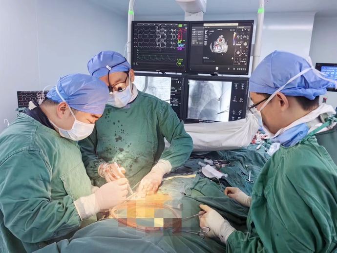 手术时,该院邀请安贞医院张海波教授进行指导,该院心外科三病区陈健超副主任医师协同心内科张申伟副主任医师精准操作,麻醉科及神经电生理团队实时监测调控生命体征,超声科团队实时反馈。在多学科的精密配合与杨斌团队的精湛操作下,手术顺利完成。