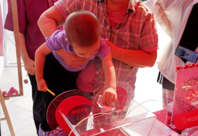 在群众互动专区,志愿者现场表演经典“变脸”节目,吸引群众驻足观看并赢得阵阵掌声。市、区慈善总会还联合多家社工机构设置参与感强的游戏摊位,采用知识答题、抽奖等形式与市民互动,提供丰富的“小红花”相关礼品;形式多样的展位与琳琅满目的礼品吸引市民百姓广泛参与到活动中来,了解慈善知识的同时赢得激励奖品。