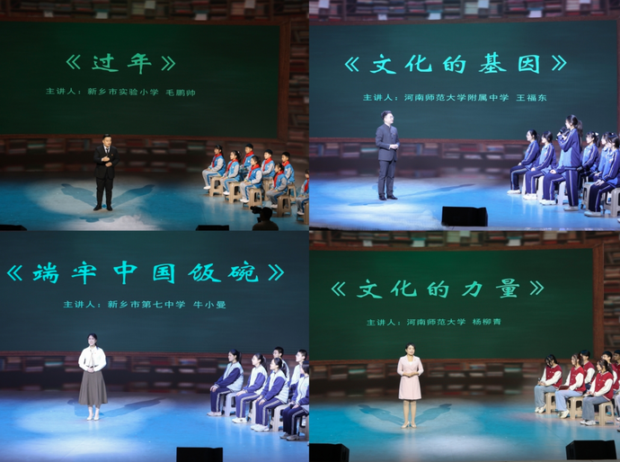 此次活动以传统文化舞蹈表演、乐器演奏、豫剧、朗诵为课程导入,用“节目+课堂”螺旋上升、循序渐进的创新体验,统筹设置大中小学思政课教学内容。舞蹈《欢庆新春》以喜庆热闹的氛围,把时间拉回春节,让全省师生再次感受年俗文化的魅力;箜篌演奏《游子吟》将小我和大我紧紧牵连起来,在一弦一音中勾勒出“粮食”故事;在豫剧《红灯记》《花木兰》中,河南文化“出圈”得以完美演绎;《立德树人守初心 铸魂育人担使命》朗诵,带领全省师生再次感悟习近平总书记在学校思想政治理论课教师座谈会上的重要讲话精神。