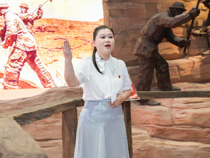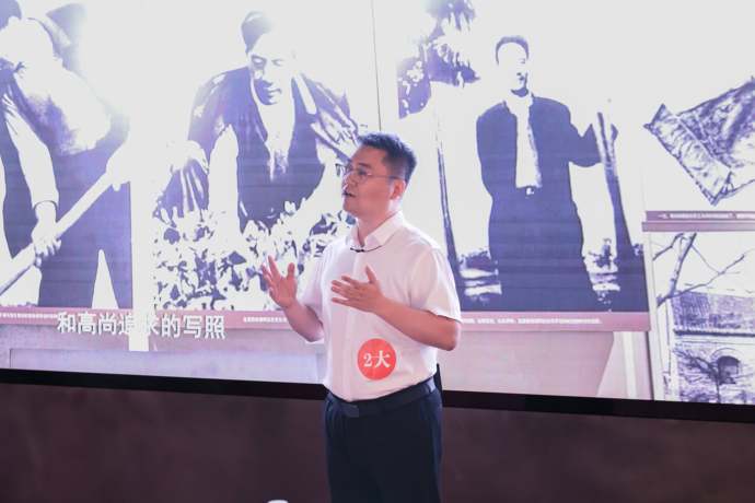 走进“大比武”现场——河南省思政课实践教学基地,也就走进了“精神课堂”。该场馆目前是河南省高校中规模最大、设备最先进的思政课实践教学基地,以伟大建党精神为源头,围绕中国共产党100多年来锻造形成的46种伟大精神谋篇布局。本次“大比武”的题目来源为46种精神中的“伟大建党精神”“抗战精神”“抗美援朝精神”“焦裕禄精神”“红旗渠精神”“载人航天精神”六种精神。不同于以往传统式的教室授课,此次比武把课堂、把赛场搬进了场馆内,让不同学段的思政课教师运用好这些手边、眼前的“教材”,实现大中小学思政课的“循序渐进、螺旋上升”。