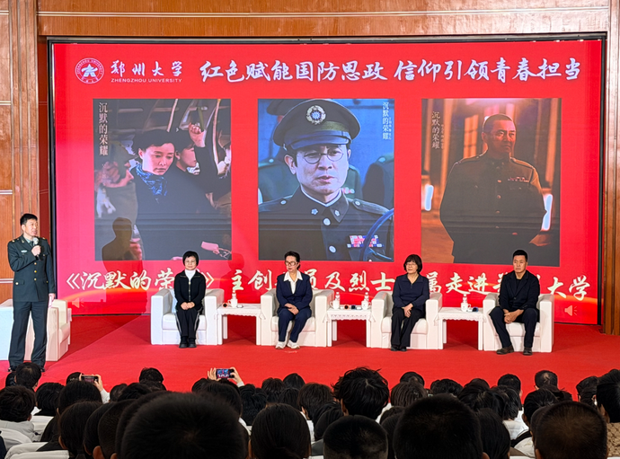 11月26日下午,“红色赋能国防思政 信仰引领青春担当”主题宣讲活动在郑州大学举办。来自电视剧《沉默的荣耀》的角色主演、革命烈士家属,高校有关负责同志以及在校师生数百人齐聚一堂,了解革命先烈英勇事迹,感受红色信仰的精神力量。
