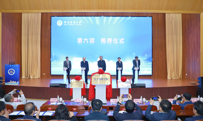 据介绍,新成立的人工智能学院体现了“高起点汇聚战略资源、融合科教产多方力量、创新‘三位一体’协同模式”三大特质。学院将聚焦智慧农业领域,着力突破农业领域“卡脖子”技术难题,打造人才培养高地、创新基地和融合发展阵地,为国家粮食安全、农业农村现代化和农业强国建设提供智力与科技支撑。仪式现场,“河南省农业大数据与人工智能国际联合实验室”“农业大数据处理与管理河南省杰出外籍科学家工作室”揭牌。