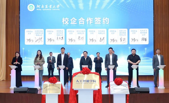 据悉,河南农业大学人工智能学院的成立,标志着学校在学科建设、科技创新与产教融合方面迈出重要一步。学校将以此为契机,汇聚全球智慧,深化产教融合,聚力科研攻关,努力打造新农科人才培养高地、农业人工智能创新基地和科教产融合发展阵地,为推进农业农村现代化贡献“农大力量”。当天,河南农业大学与华为、新华三、小米、网易有道、科大讯飞、软通动力等六家企业签署合作协议,未来将在人才培养、技术研发、成果转化等方面开展深度合作,推动教育链、人才链与产业链、创新链有机衔接。