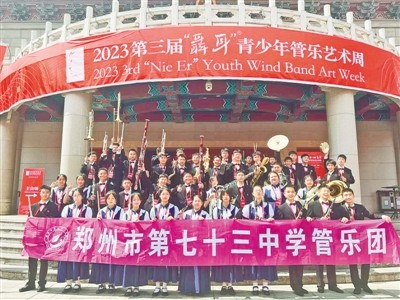 郑州市第七十三中学管乐团参加“2023第三届‘聂耳’青少年管乐艺术周”比赛,斩获金奖并捧获聂耳杯
