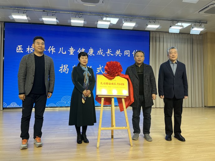 随后,与会领导一同为“医校合作儿童健康成长共同体”揭牌。