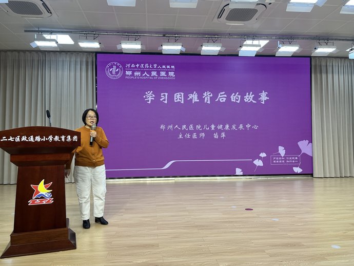 启动仪式结束后,郑州人民医院儿童健康发展中心主任医师苗萍为教职工和家长代表作了题为《学习困难背后的故事》的专题讲座。同时,在二楼体育馆设置了分会场,由郑州人民医院南院区的急救人员对学生进行急救知识的实操和培训。