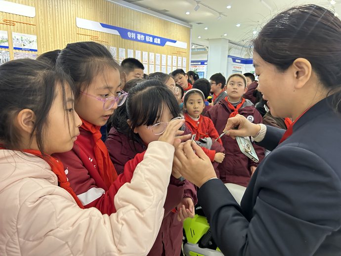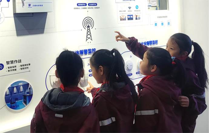 “哇!这个好像月球车呀!”“咦,这不是我家的燃气智能传感器吗?”“我们的空气检测系统也太酷了吧!”一走进汉威科技智慧展厅,同学们就发出啧啧赞叹。