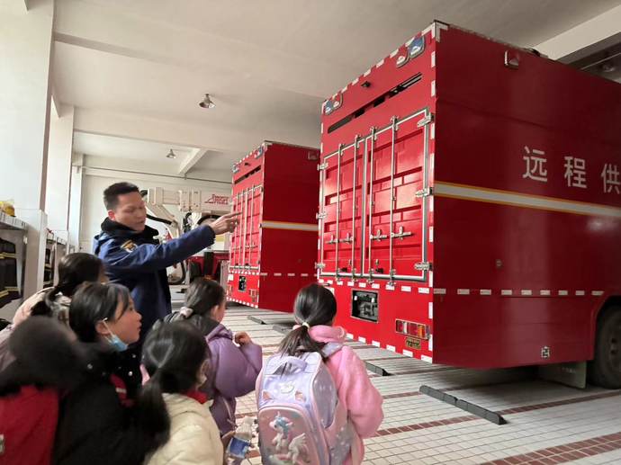 除了在校园开展的活动之外,学校还积极联络消防大队,带领学生走进二七区消防大队,“零距离”参观、体验和学习消防知识,让同学们切身感受“火焰蓝”的日常训练,了解课堂上看不到的内容。
