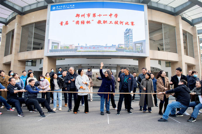 为进一步丰富教职工文体生活,增强教职工的凝聚力和向心力,营造团结和谐、积极向上的氛围,11月22日,郑州市第十一中学举行首届“团结杯”教职工拔河比赛。