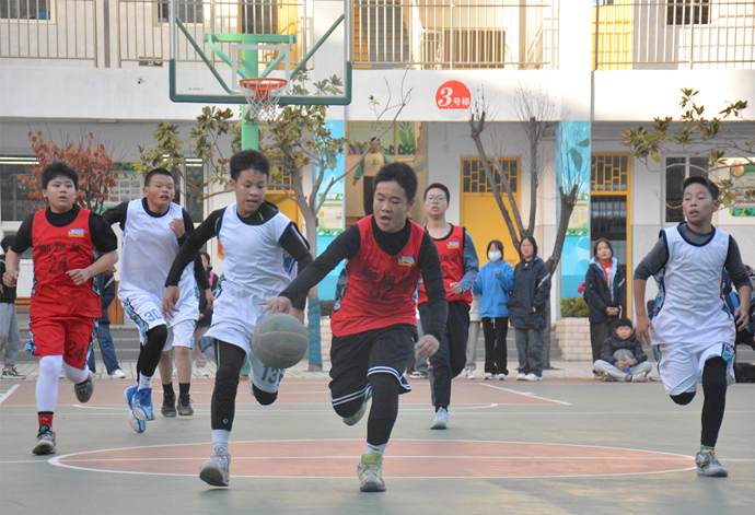12月7日下午两节课后,二七区建新街小学行知校园里加油助威与喝彩的声音此起彼伏,汇集了郑东新区众意路小学和二七区建新街小学优秀教练及篮球运动员的一场扣人心弦的篮球友谊赛精彩举行。