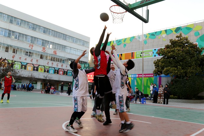 比赛中,队员们一个个如猛虎般随着篮球的运动轨迹在球场上默契配合迅速奔跑,带球过人、机智传球、跳跃拦球、你抱我抢、飞身投篮,每套动作都如行云流水般一气呵成,精彩至极。观众们随着球场上的队形变化和篮球的跃起落地,时而屏息凝气,时而欢呼喝彩,时而扼腕叹息……球场内外的老师和同学们被魅力无穷的篮球比赛紧紧地连接在一起,共同享受每一次配合,每一个投篮带来的精彩与感动!