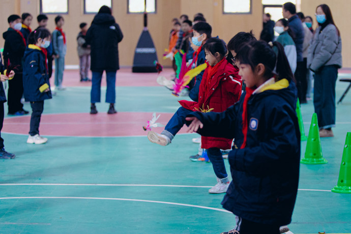 踢毽高手们,脚似有魔力,毽子欢快地上下跳动,在同学们的脚上开起了一朵朵鲜艳的小花。跳绳小运动员们不约而同地飞起来,他们身轻如燕,抑扬顿挫,人绳合一,犹如一条美丽的彩虹,形成了一道道亮丽的风景线。接力赛上,同学们配合默契,接棒迅速,凝心聚力,冲向终点。小小接力棒,传递的是团队的力量,是胜利的希望。