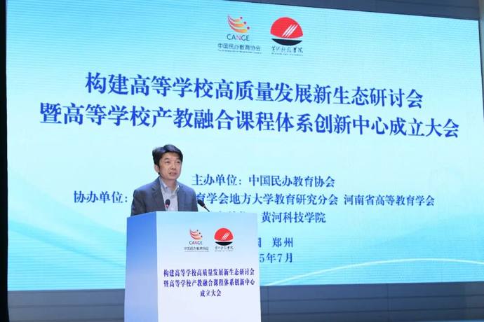近日,由中国民办教育协会主办,中国高等教育学会地方大学教育研究分会、河南省高等教育学会协办,黄河科技学院承办的“构建高等学校高质量发展新生态现场会暨高等学校产教融合课程体系创新中心成立大会”在河南郑州黄河科技学院举行。