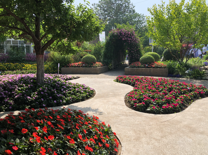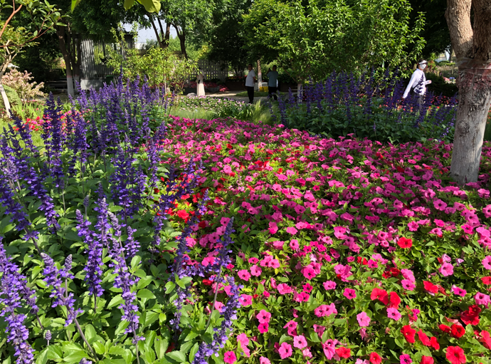 占地156亩的展区内,各种花卉五彩斑斓,令人眼花缭乱,俨然是花的世界。垂吊矮牵牛惊浪、轻浪系列以其独特的垂枝形态和鲜艳花色十分吸睛;石竹流星、非洲凤仙领航、夏日凤仙则以其优雅的花姿和丰富的色彩让人驻足不前;南非万寿菊、新角堇果汁冰糕、长春花热烈鲜艳,薰衣草、大滨菊、钓钟柳冰糖、鼠尾草等新品花色清新自然,令人心旷神怡。