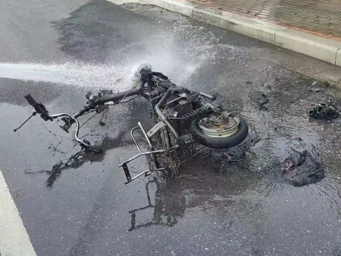 起火原因:道路停放的电动自行车蓄电池故障引发火灾;电动自行车蓄电池品牌:卓能;生产企业:卓能新能源有限公司。