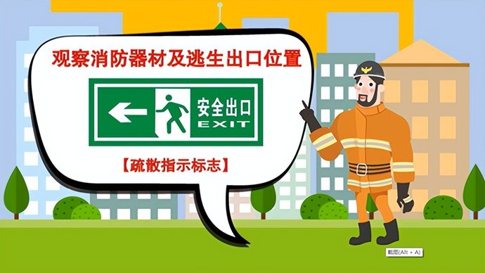 一般来说,商业综合体都会用明显的标识将安全出口、疏散通道标记出来,同时还会标注火灾逃生疏散路线图,帮助人们在火情发生时,更快脱离危险。进入大型综合体后,请及时熟悉安全出口,查阅楼层消防安全平面疏散图,牢记安全出口位置。
