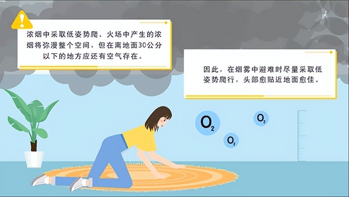 无论哪一种建筑类型,火灾中的烟雾毒性都很强,而且很有可能致命。所以,在逃跑的过程中,身体一定要尽量低姿前行。