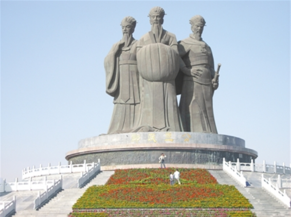 成功广场位于荥阳市城东南檀山、郑上路与310国道交会处三角地带,矗立在这里的郑氏三公像格外引人注目,三公脚下铭刻的郑氏三公碑文,诉说着春战国时代郑人的智慧和曾经的辉煌,周围像连环画一样串联了二十八组人物故事,各朝代郑姓历史名人位列其中,光辉形象浮雕其上。