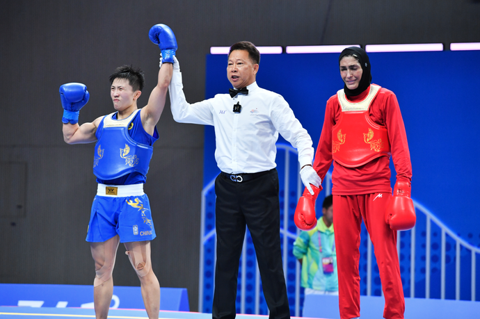 9月28日上午,杭州亚运会武术散打项目决赛在杭州萧山瓜沥文化体育中心落下帷幕。上届亚运会冠军、来自塔沟武校的河南运动员李玥瑶面对身高有明显优势的伊朗对手迅速进入状态,经过两局激烈决战,最终以2:0击败战伊朗选手埃拉赫-曼苏尔扬-萨米鲁米获得冠军,为中国武术散打队在杭州亚运会赢得了第一枚金牌。值得一提的是,在上一届雅加达亚运会决赛比赛中,李玥瑶也是击败了伊朗选手埃拉赫-曼苏尔扬-萨米鲁米获得金牌。