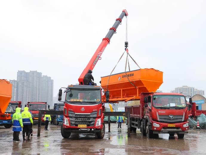 目前,郑州公用集团清除冰雪保通编队已完成撒布机的装载、环保型融雪剂的装填,编队A组(白班)与B组(夜班)进行无缝衔接,24小时保持待命状态。10日夜间,前线作业组前往值守点位,根据雪情状况以及调度指令,时刻准备清冰除雪“亮剑”行动。