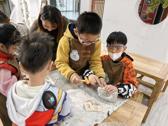 活动现场时而热烈,时而肃静。在清明节古诗词环节,读懂清明文化内涵;在追忆甲骨文出土史环节,了解先辈们见证殷墟、传承守护的坚守;在考古挖掘体验环节,见到甲骨挖掘展示箱、体验了考古挖掘,并亲手拓印一份专属的文脉礼。