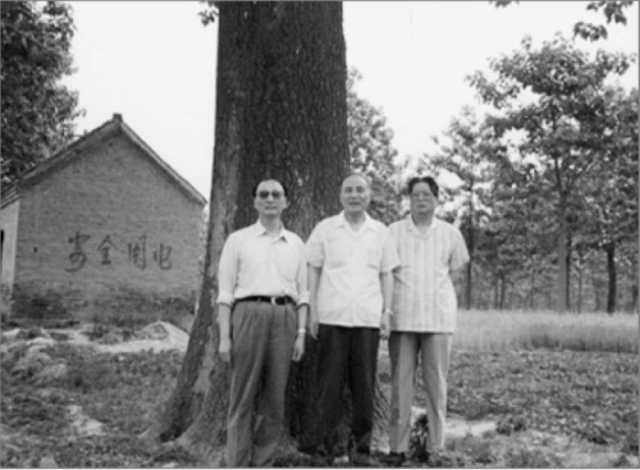 1990年6月,穆青、冯健、周原在兰考焦裕禄生前种的泡桐树前合影