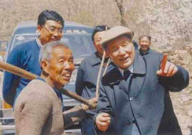 晚年的穆青(右一)坚持深入基层和人民群众中间
