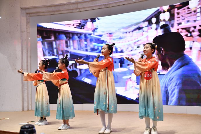 在少儿组复赛中,孩子们稚嫩而坚定的声音、丰富的面部表情和肢体动作、恰到好处的配乐和画面,给现场观众带来了一场视听表演。《我有一个美丽的祖国》《我的长鼻子老爸》《只此青绿》《跟着李白梦回故乡》以及原创《出圈的河南文化》等作品被选手们演绎得声情并茂,让现场观众充分体会到了语言艺术的魅力,赢得了观众的阵阵掌声。