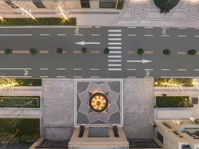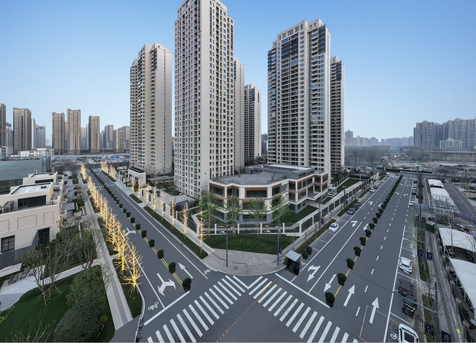 在大城一体规划中,山河道参考“巴塞罗那超级街区”的营造理念,以“十字轴线”衔接四个地块,形成山河道“十字街区”,构建都会浪漫生活体系。在政和路与二砂路交会处,项目将商业、休闲、景观、通行、展示等融为一体,打造风格鲜明的街心广场,形成区域生活圈。在二砂路上,项目倾力打造现代都会风格商业街区,以银杏大道提升街区的整体面貌。以山河公园为中心,项目将建设多座街角公园,焕发中原主城的活力与生机。