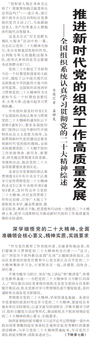 ——全国组织系统认真学习贯彻党的二十大精神综述