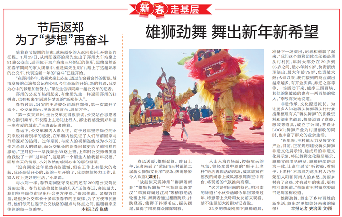 春风送暖,雄狮劲舞。昨日上午,记者来到了“荥阳市王村镇第二届蒋头舞狮文化节”现场,热闹景象令人欢喜。(今日《郑州日报》5版)