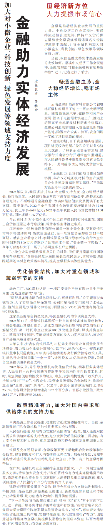 加大对小微企业、科技创新、绿色发展等领域支持力度