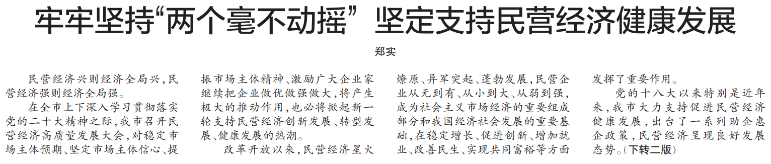 牢牢坚持“两个毫不动摇” 坚定支持民营经济健康发展