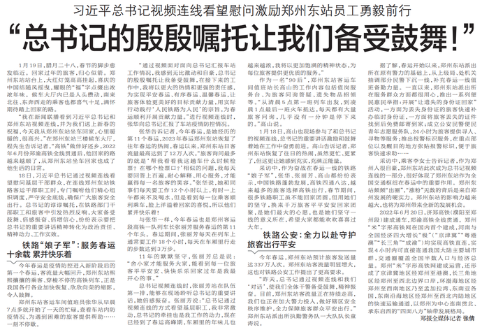 习近平总书记视频连线看望慰问激励郑州东站员工勇毅前行