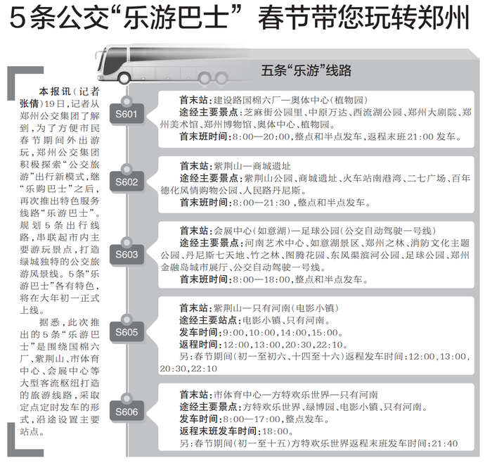 5条公交“乐游巴士”春节带您玩转郑州