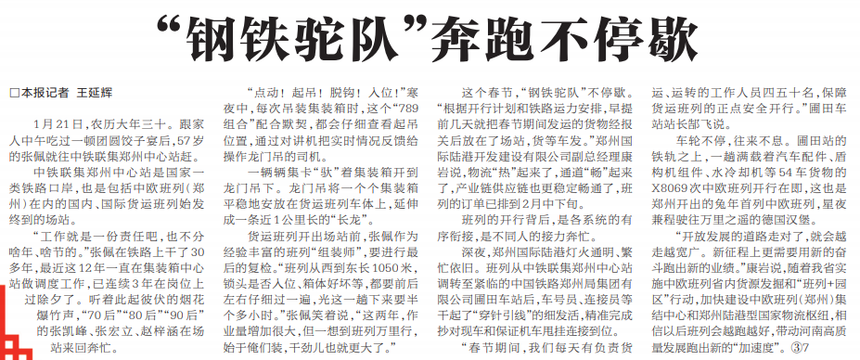 1月21日,农历大年三十。跟家人中午吃过一顿团圆饺子宴后,57岁的张佩就往中铁联集郑州中心站赶。