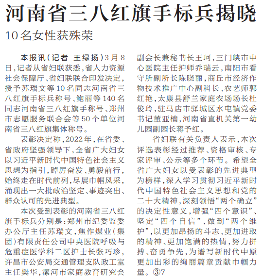河南省三八红旗手标兵揭晓