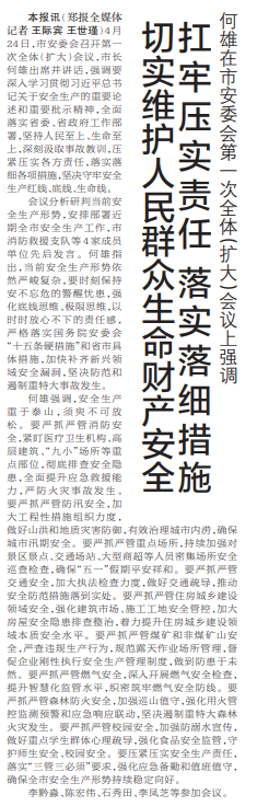 何雄在市安委会第一次全体(扩大)会议上强调