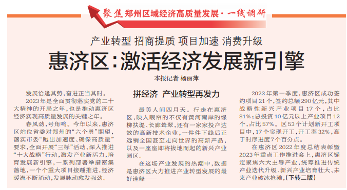 2023年是全面贯彻落实党的二十大精神的开局之年,也是推动惠济区经济实现高质量发展的关键之年。(今日《郑州日报》1版、2版)