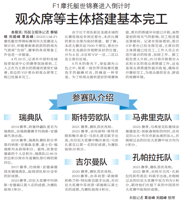 2023U.I.M.F1摩托艇世界锦标赛郑州大奖赛进入倒计时,伴随着淅淅沥沥的阴雨天气即将“告别”,赛事的各项筹备工作也进一步提速。(今日《郑州日报》8版)