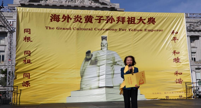 海外炎黄子孙拜祖大典组委会主席张丽莉宣布大典正式开始