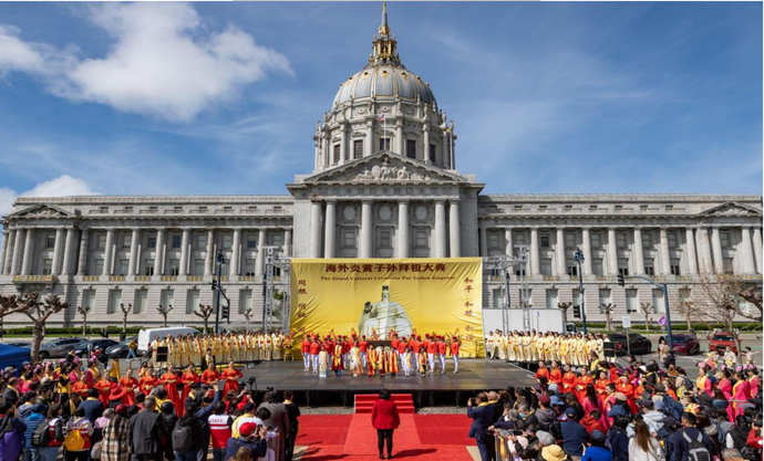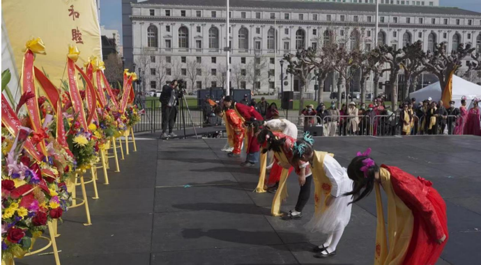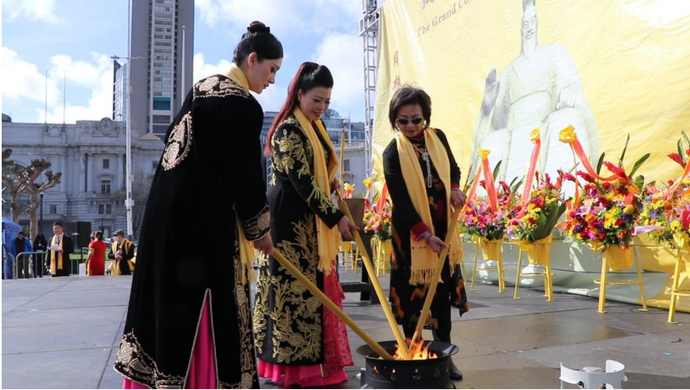 “三月三,拜轩辕。”4月2日,由海外炎黄文化传承基金会主办、美国华商总会协办的第八届海外炎黄子孙拜祖大典在旧金山市府广场隆重举行。海外华夏儿女身在异国、不忘祖先,遥拜中华民族的人文始祖轩辕黄帝。