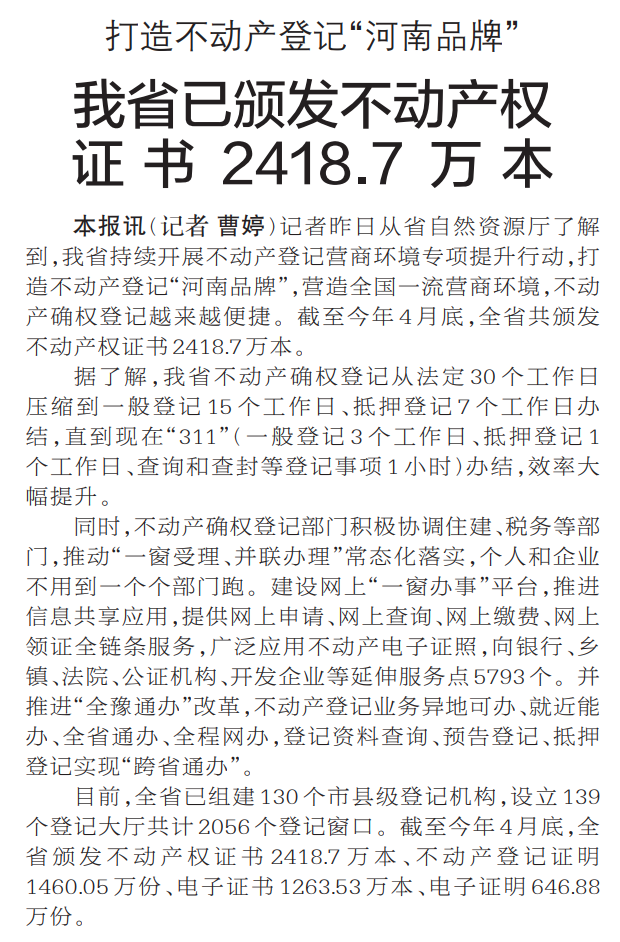 打造不动产登记“河南品牌”