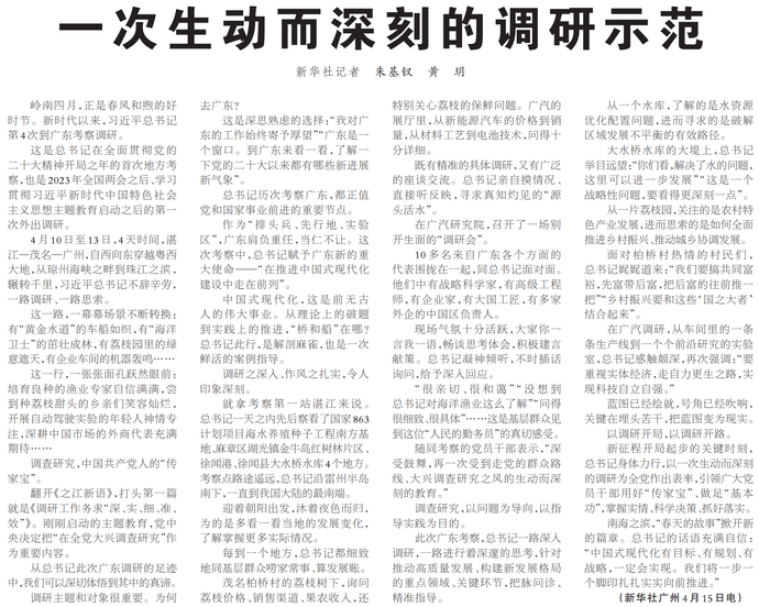 岭南四月,正是春风和煦的好时节。新时代以来,习近平总书记第4次到广东考察调研。(今日《人民日报》1版)