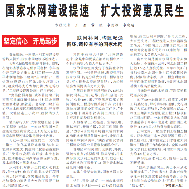 国家水网建设提速 扩大投资惠及民生