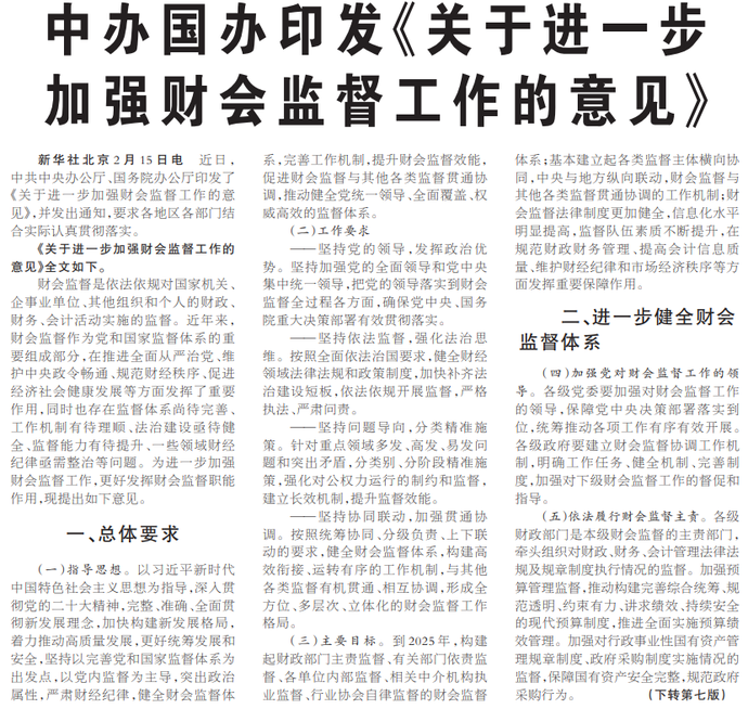 中办国办印发《关于进一步加强财会监督工作的意见》