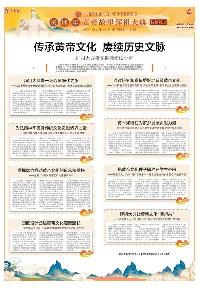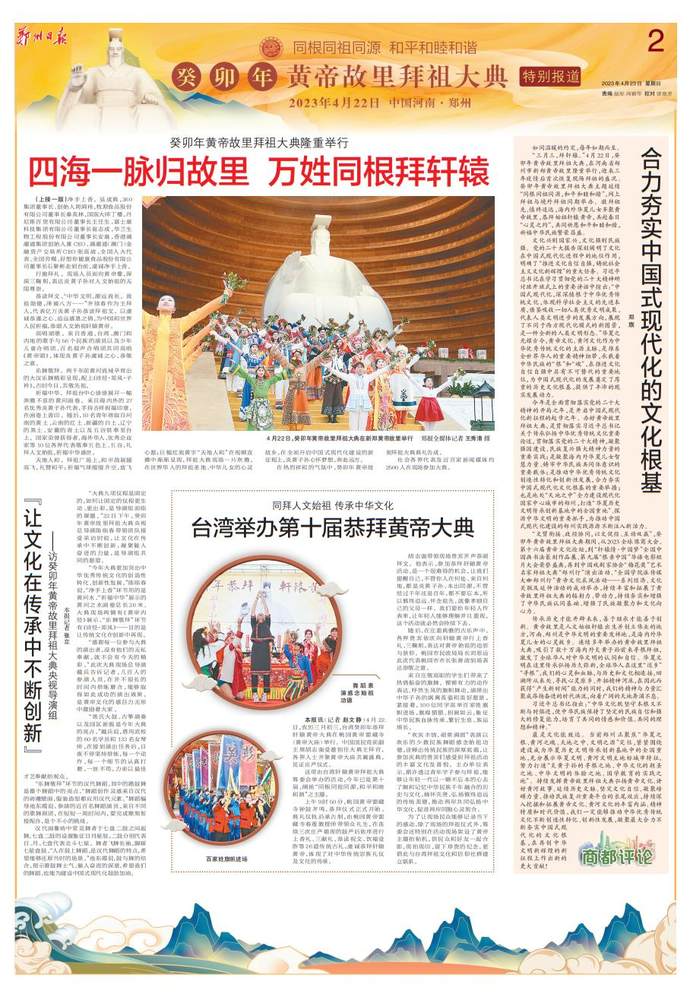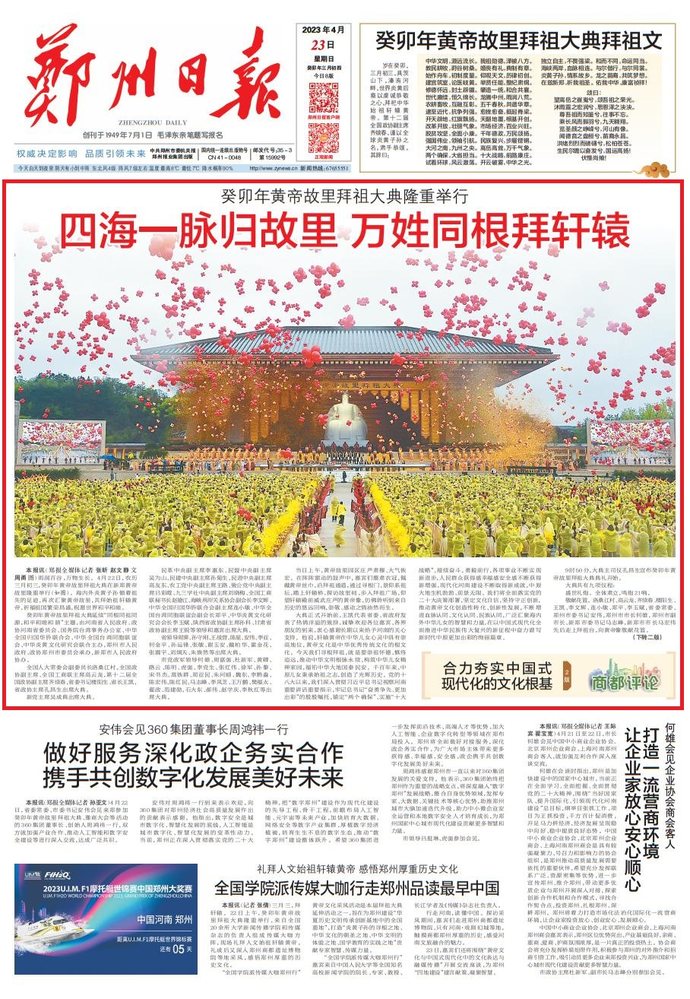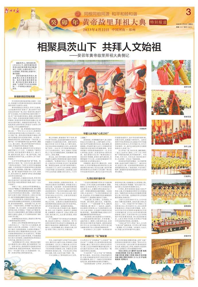 癸卯年黄帝故里拜祖大典是疫情之后首次恢复现场拜祖。海内外嘉宾相约黄帝故里、黄帝故里园区新貌首次亮相、“云拜祖”平台开启全新体验……今年拜祖大典亮点纷呈。(今日《郑州日报》3版)