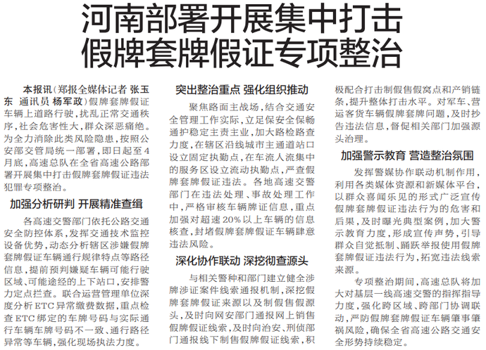 河南部署开展集中打击假牌套牌假证专项整治